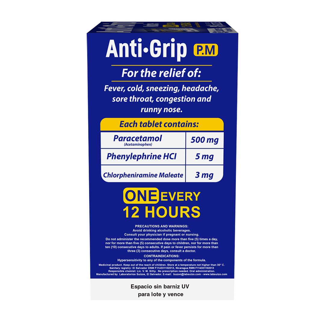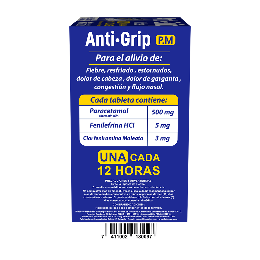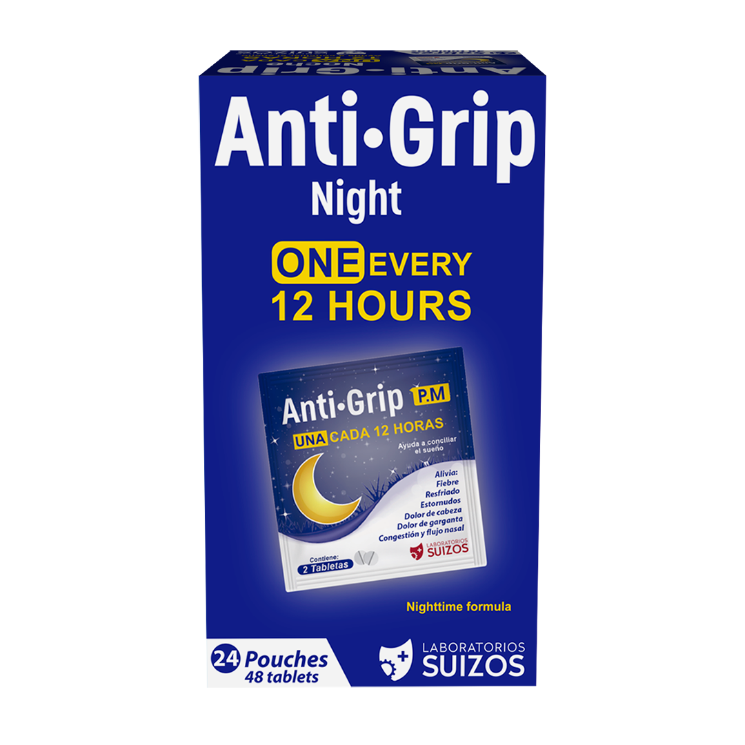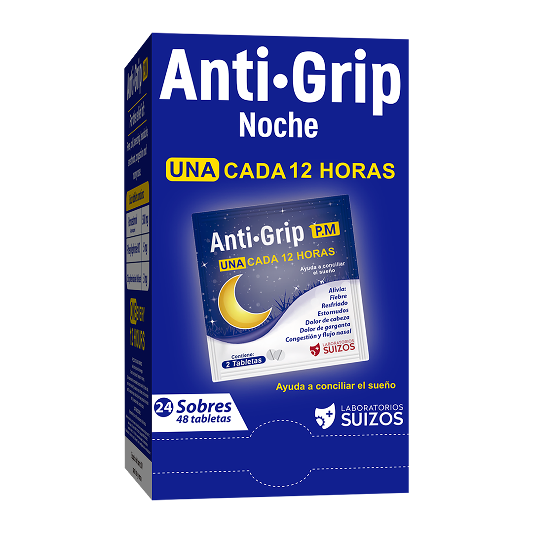 Alivia fiebre, resfriado, estornudos, dolor de cabeza, dolor de garganta, congestión y flujo nasal, ayudando a conciliar el sueño.